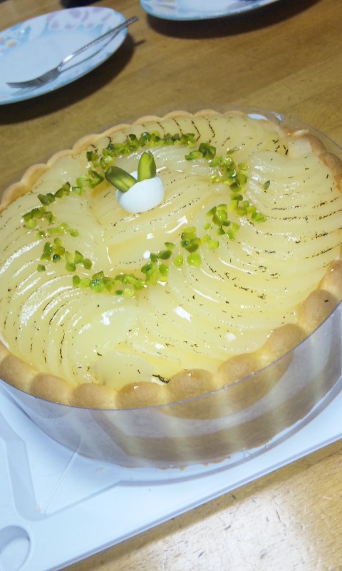 今月のケーキは梨(多分)でした