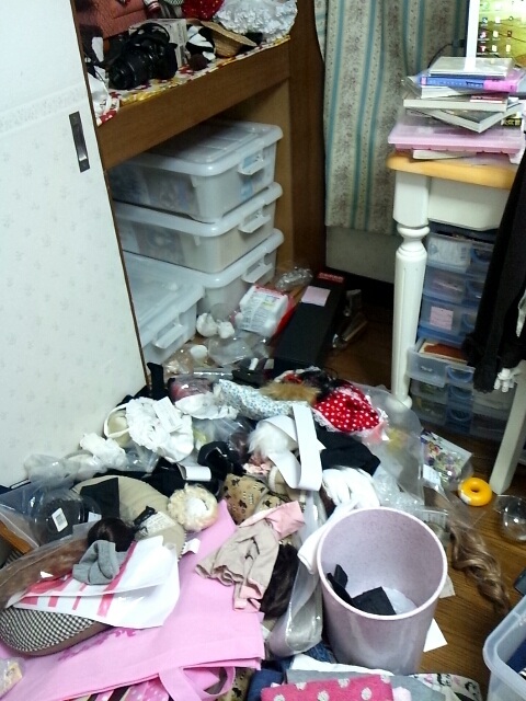 人形用品が入ってる衣装ケースをひっくり返して全部ブチ撒ける。