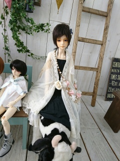 一人だけ牛に座らされる80cmくん。
