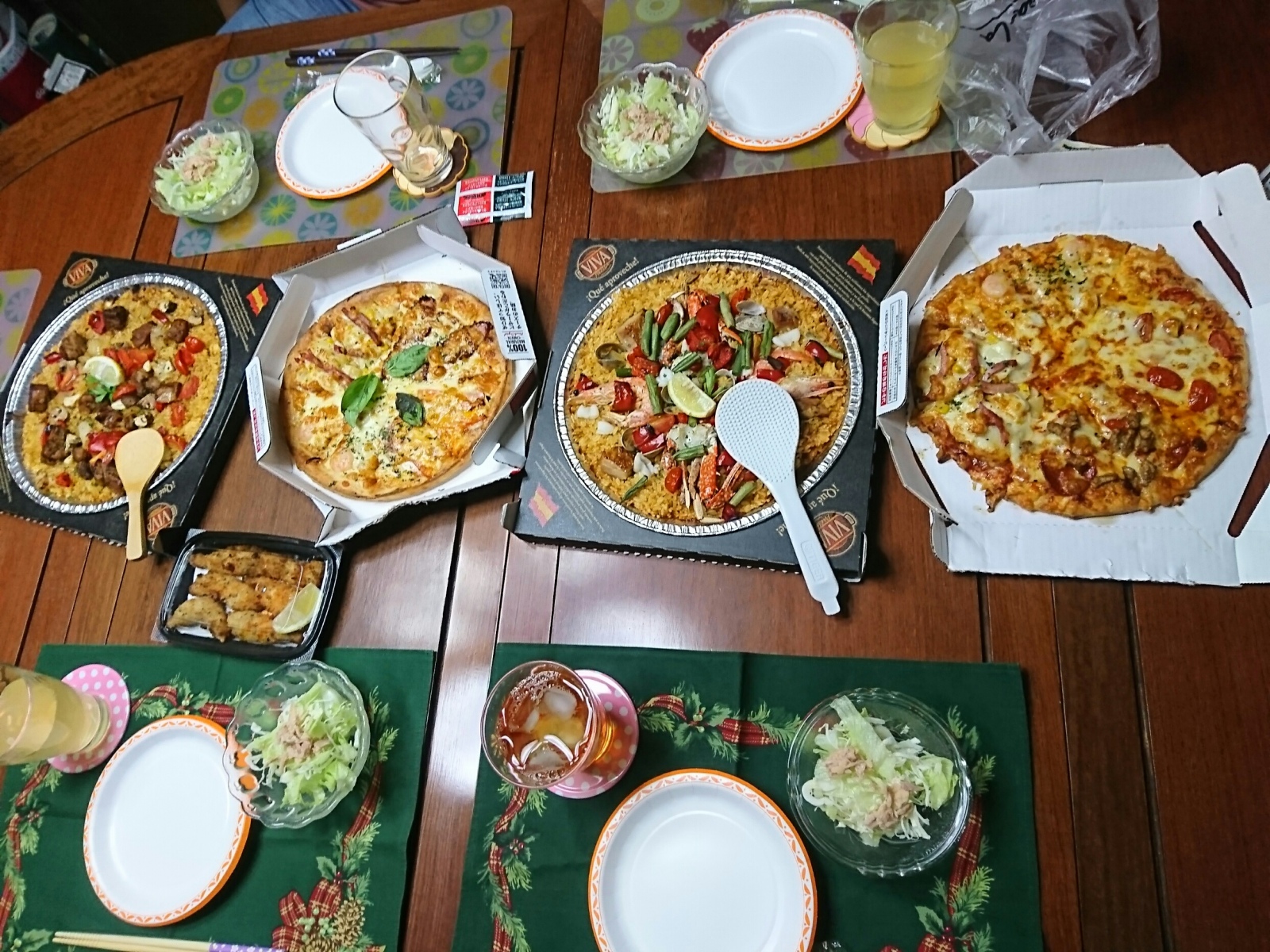 見えないけど6人でパエリアとピザとなんか食べたやつ。